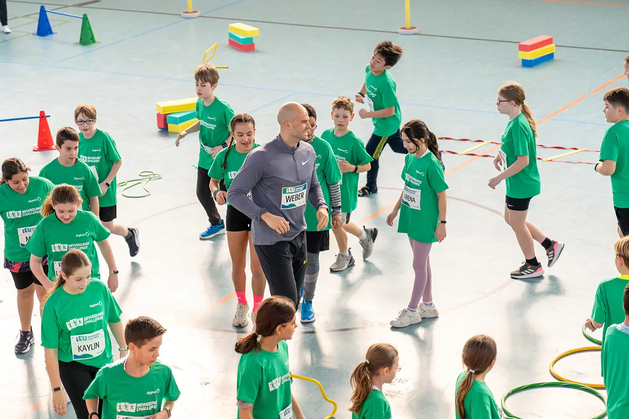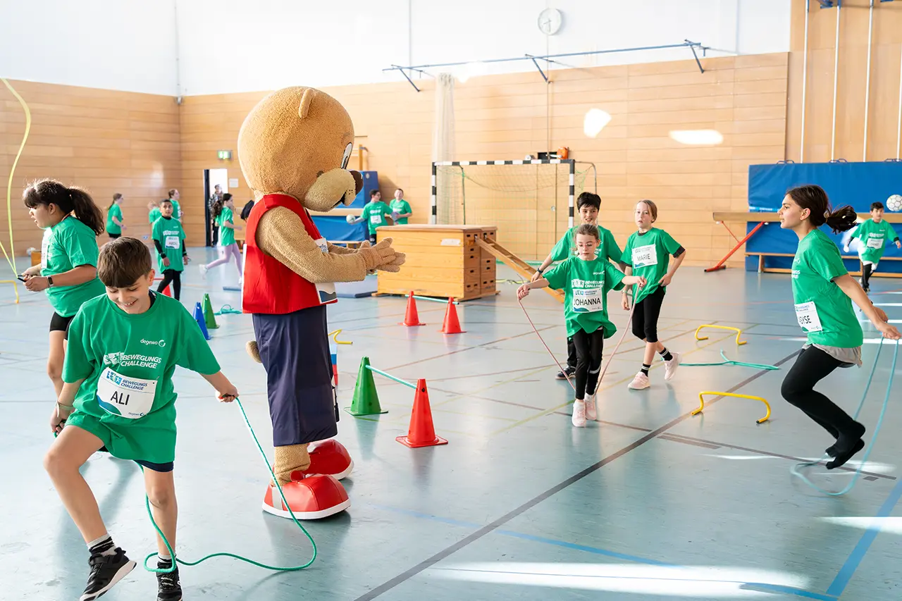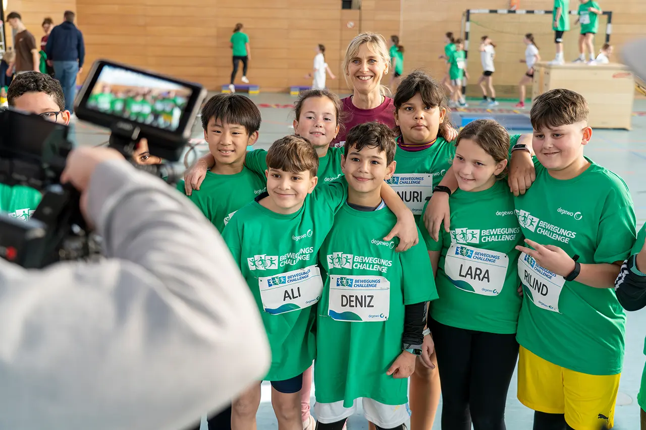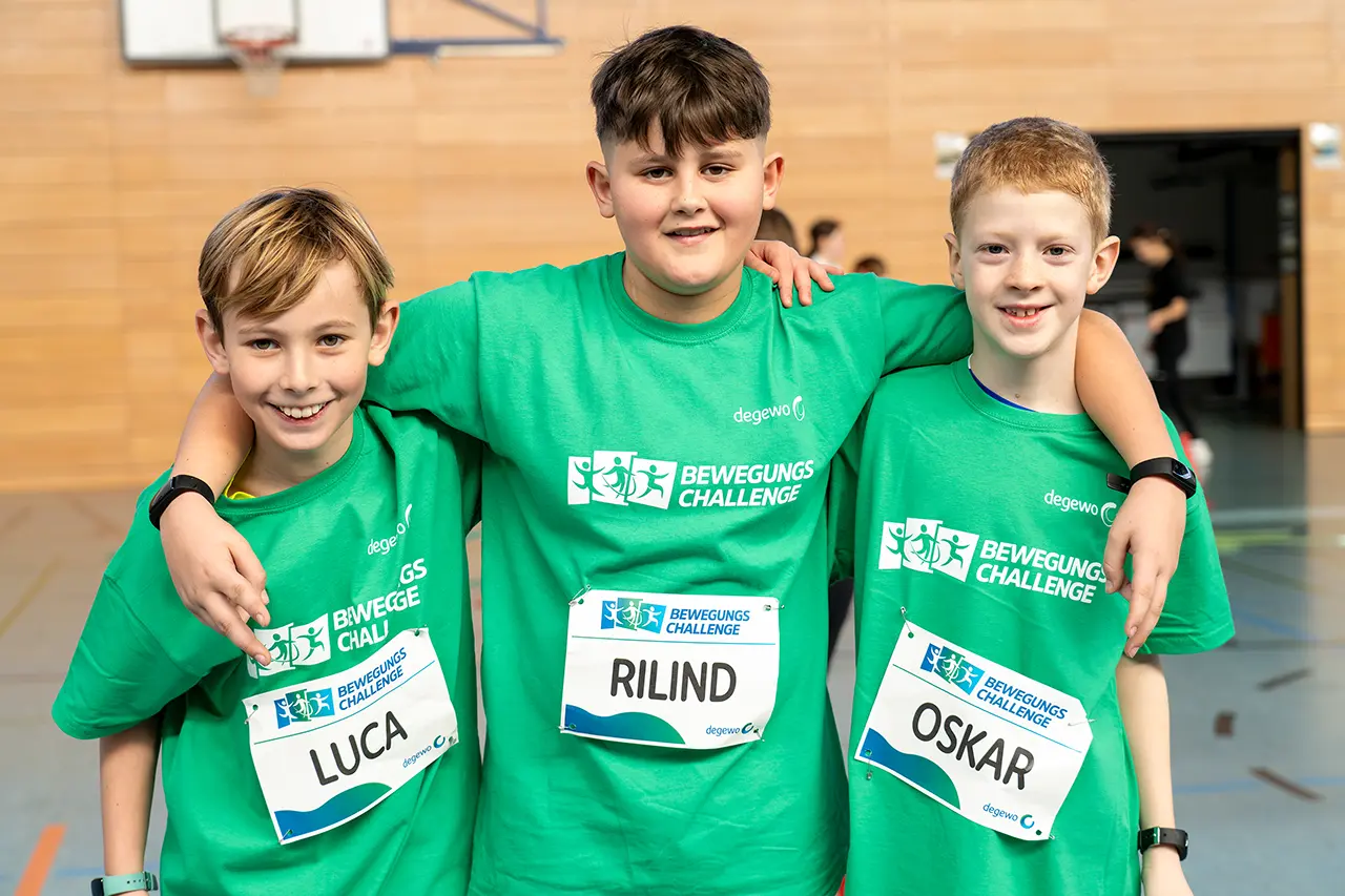 Mit der degewo-Bewegungschallenge bringen wir Berliner Schülerinnen und Schüler in Bewegung – in Neukölln, Marzahn-Hellersdorf, Treptow-Köpenick und Mitte (Stadtteile Gesundbrunnen und Wedding). Jede Schule kann mit 50 Teilnehmenden an einem der zwei täglichen Zeitfenster mitmachen. Ziel: So viele Schritte wie möglich sammeln!